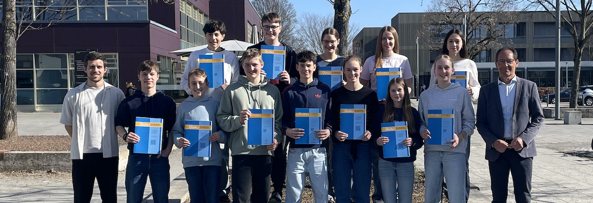 Im Juli 2025 haben sich 6 Schülerinnen und Schüler der 10. Klassen erfolgreich der DELF-Prüfung gestellt und bewiesen, dass sie das Niveau B1 souverän beherrschen. Neben Hörverstehen, Leseverstehen und einer Schreibaufgabe absolvierten sie sich auch eine mündlichen Prüfung, für die ein Dozent des Institut Français Stuttgart an unsere Schule gekommen war.