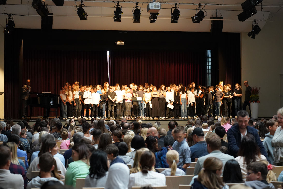 Sechs neue fünfte Klassen durften wir am 9. September bei der Einschulungsfeier am OHG willkommen heißen. Nach der herzlichen Begrüßung im Kubino durch den Schulleiter Herr Lietzau, unsere Abteilungsleiterin für die Unterstufe, Frau Fingerle, und unseren Elternbeiratsvorsitzenden, Herr Laszlo, durften die Eltern und die Fünftklässler durch ein Interview mit OHG'lern aus Klasse 6 mehr über unserer Schule erfahren. Außerdem konnten die neuen Fünftklässler eine musikalische Einlage genießen sowie eine Tanzchoreografie der Klassenstufe 6 bis 8 bestaunen, die gemeinsam mit der engagierten Schülermentorin Juliane Ritter (K2) eingeübt wurde.